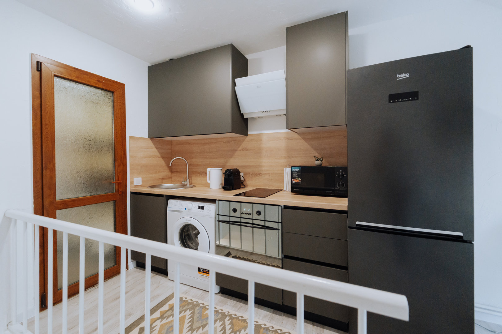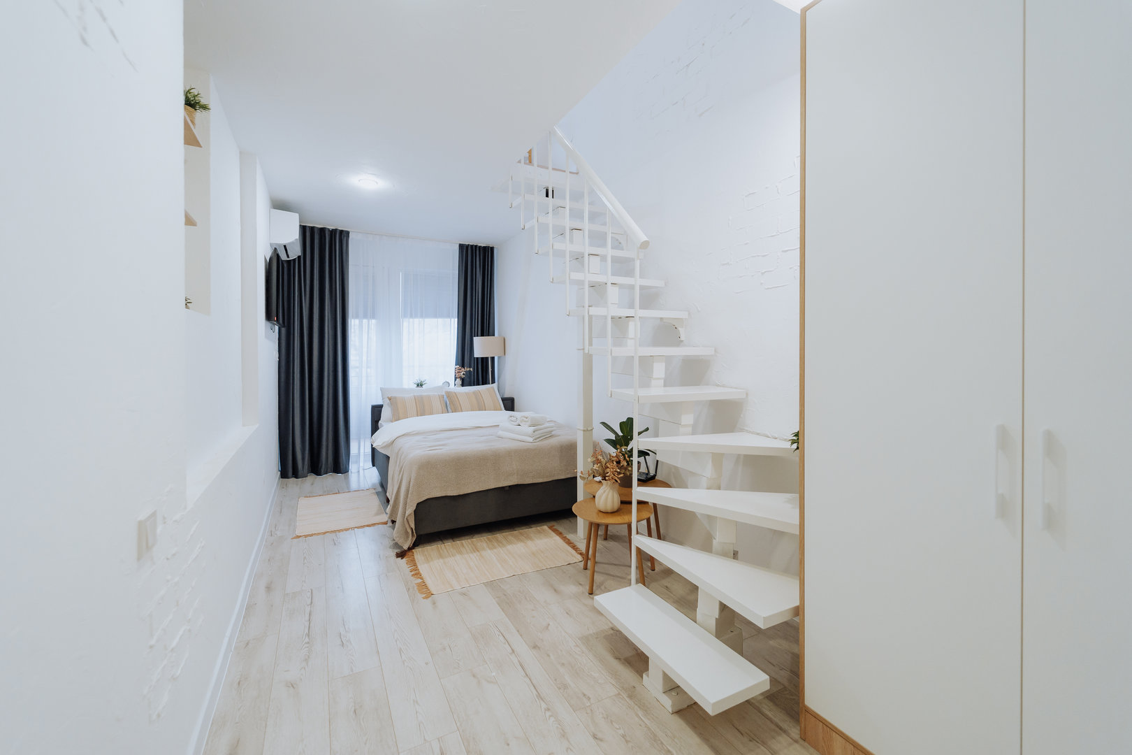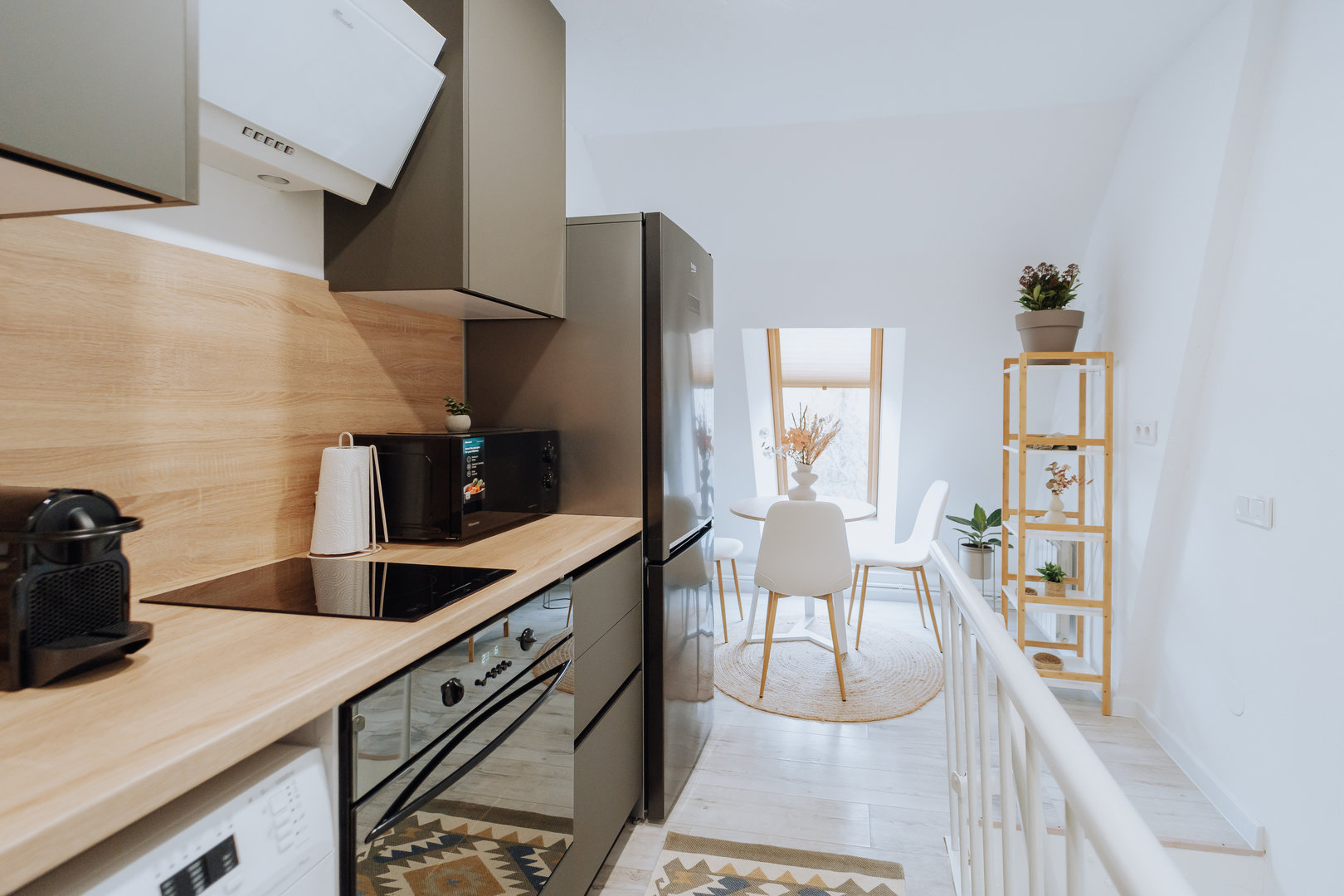 Stay in the heart of the city in a newly renovated top-floor apartment with a private balcony.